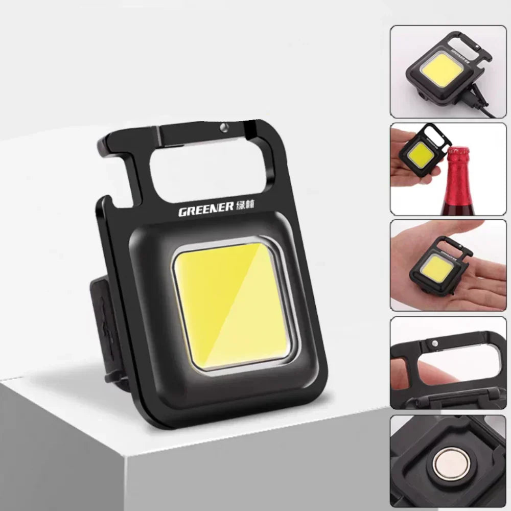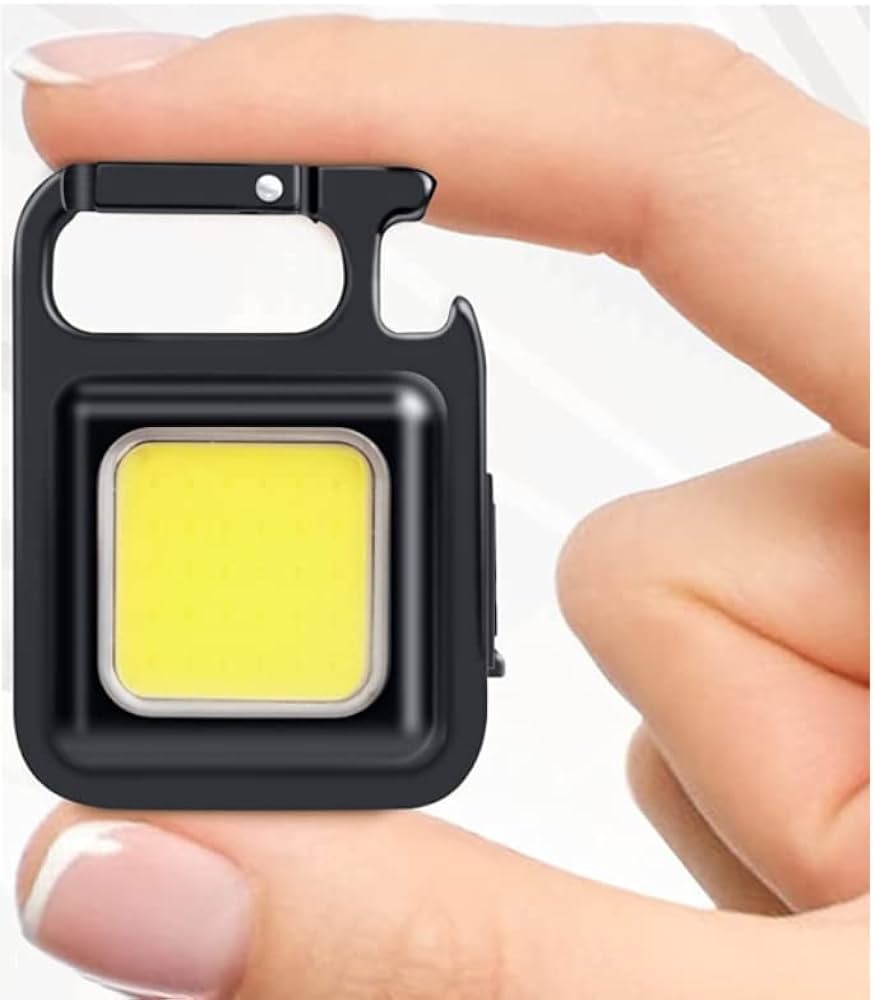 - High Brightness- This keychain flashlight can emit 800lumens lights at maximum. It provide a bright light with wide angle. The large COB Technical LED allows this light to be used as a small work light and emergency light.
