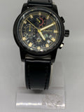 DUANTAI D935 Stainless Steel Water Resistant Wrist Watch in Black Leather Band with Functional Date & Stop Watch